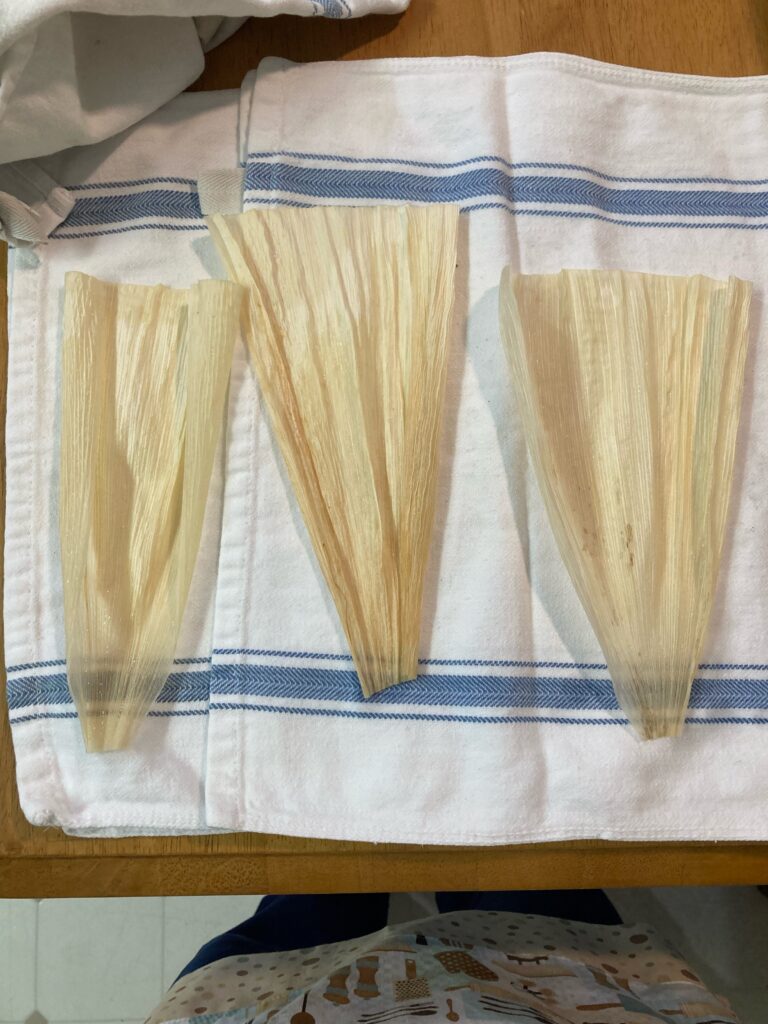 The last thing I had to do before assembling the tamales was drying the corn husks that had been soaking in hot water.