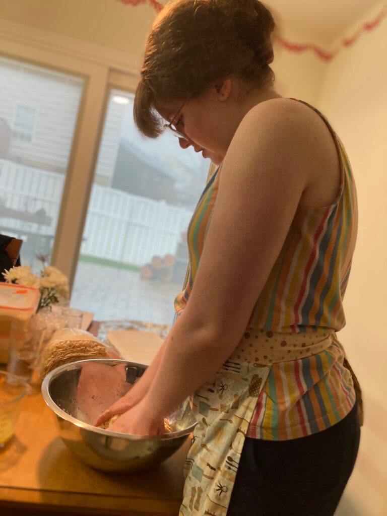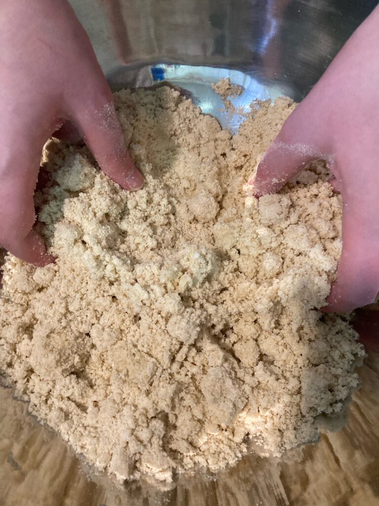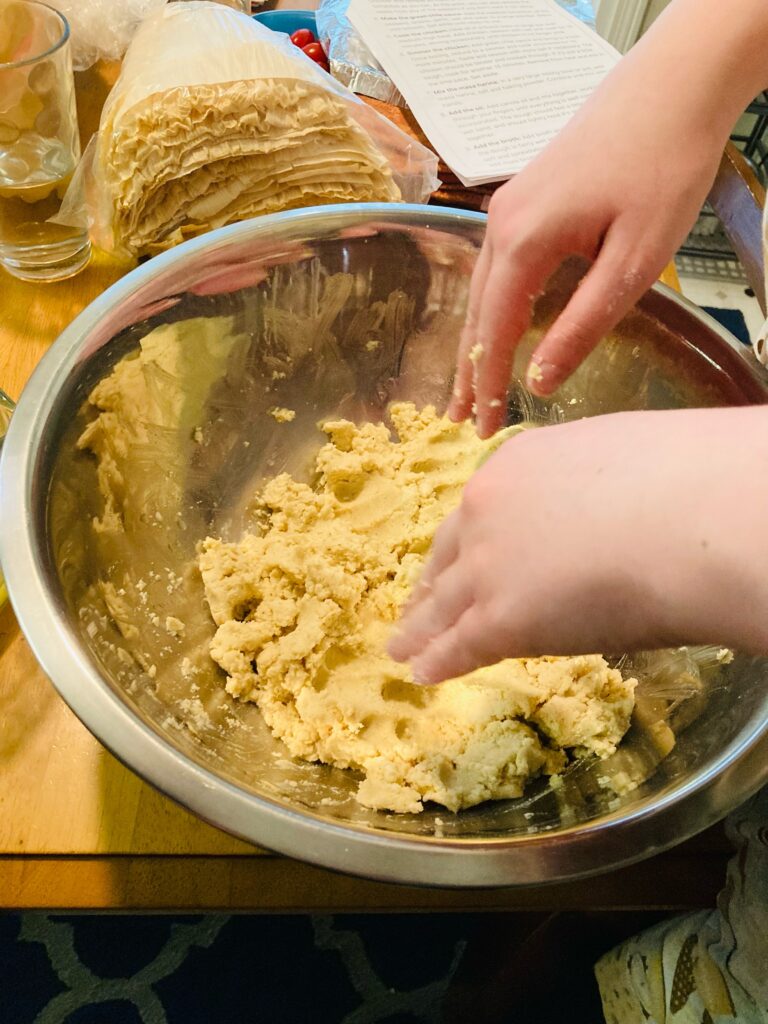 Then, to fully form the dough, I added in chicken broth until it felt like dry hummus as Isabel described.